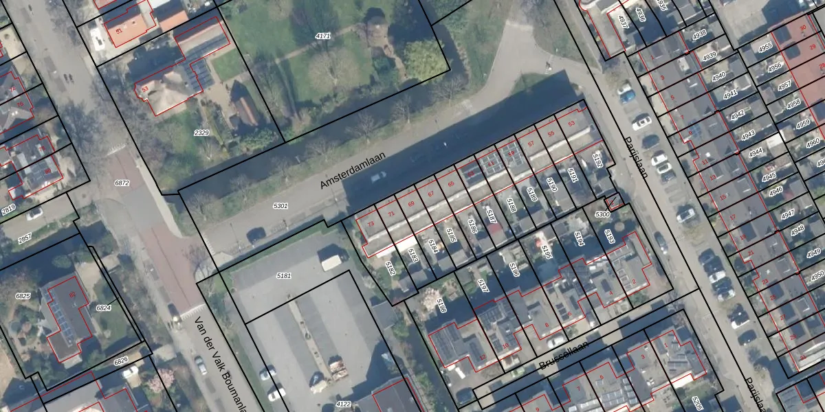 Gebruik de zoekbalk of klik op een perceel voor informatie over de adressen binnen dit perceel.