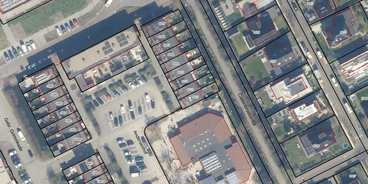 Het perceel waarop Andersenhof 6 staat heeft een oppervlakte van 123 m². Dit is een middelgroot perceel. De perceeloppervlakte wordt geregistreerd door het Kadaster. Gedetailleerde informatie over de maten van dit perceel kunt u vinden in het rapport Kadastrale kaart met maatvoering van Andersenhof 6.
