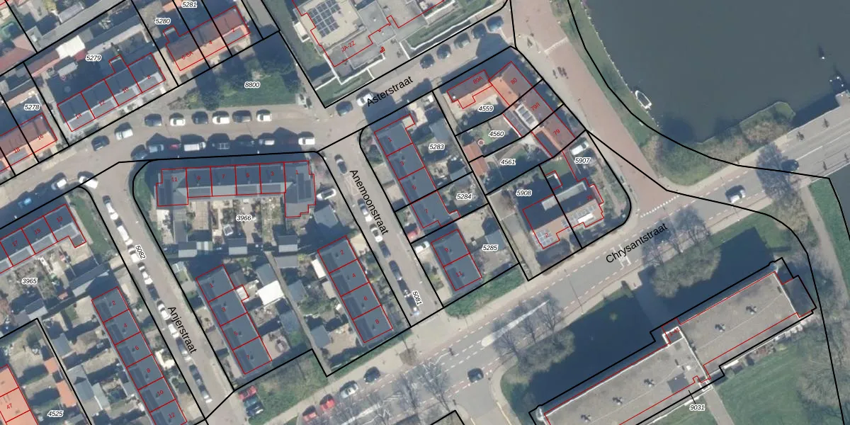 Gebruik de zoekbalk of klik op een perceel voor informatie over de adressen binnen dit perceel.