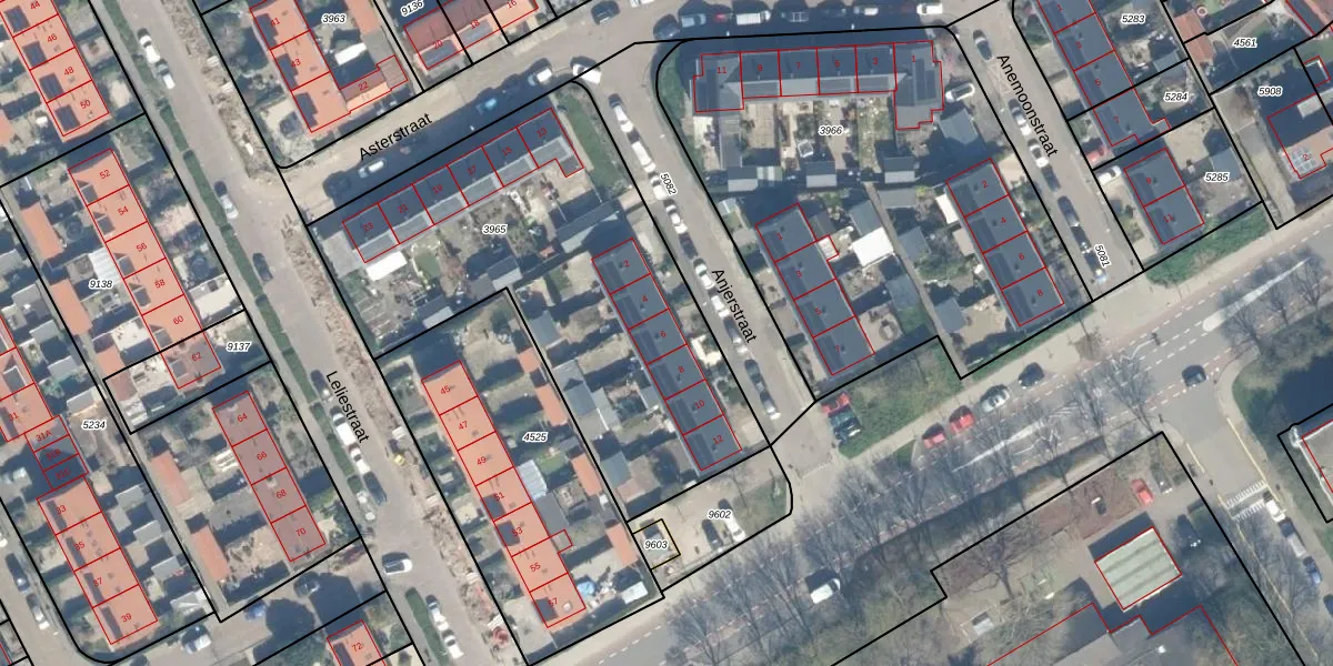 Anjerstraat 6 is gelegen op kadastraal perceel WDN01B3965. Deze kadastrale aanduiding is uniek en wordt gebruikt door het Kadaster om eigendomsrechten en andere zakelijke rechten vast te leggen. Het perceel maakt onderdeel uit van de kadastrale gemeente Woerden.