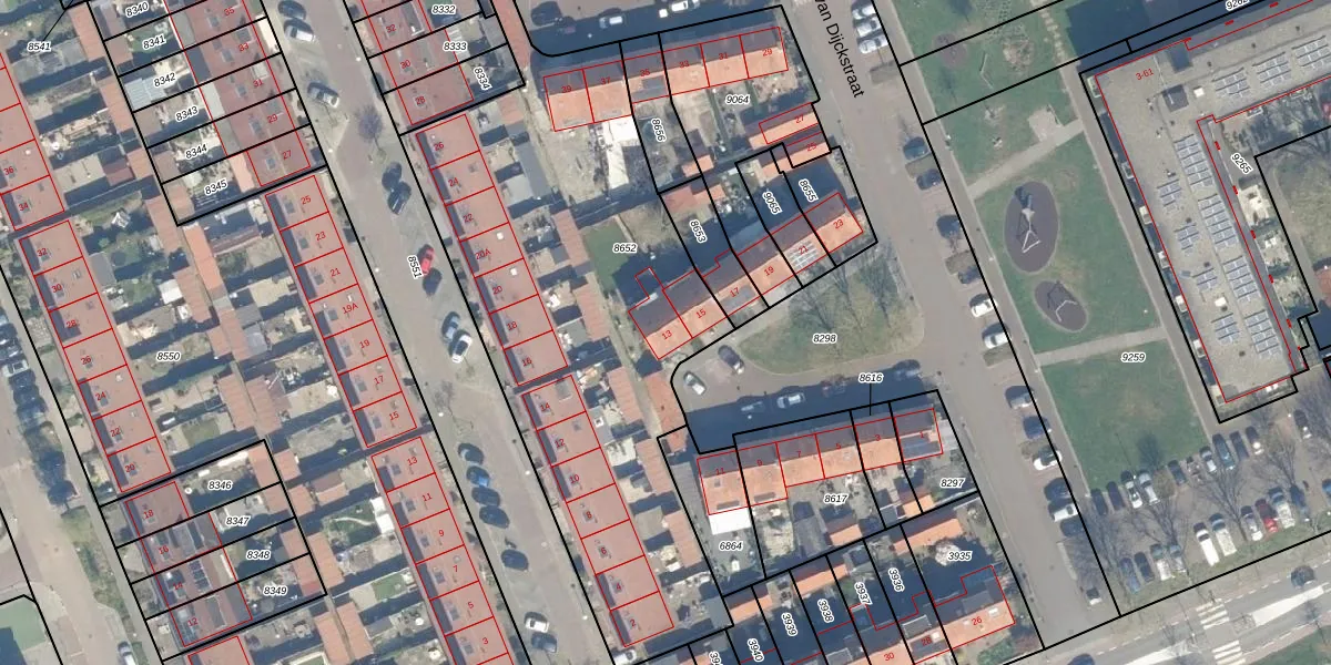 Het perceel waarop Anthonie van Dijckstraat 13 staat heeft een oppervlakte van 2446 m². Dit is een zeer groot perceel. De perceeloppervlakte wordt geregistreerd door het Kadaster. Gedetailleerde informatie over de maten van dit perceel kunt u vinden in het rapport Kadastrale kaart met maatvoering van Anthonie van Dijckstraat 13.