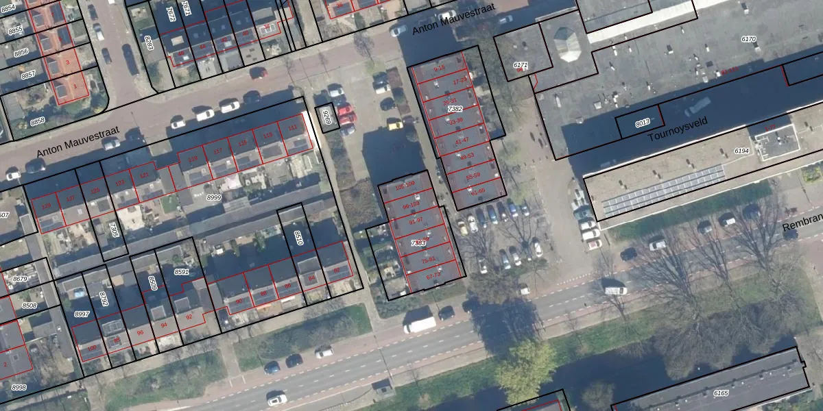 Anton Mauvestraat 101 is gelegen op kadastraal perceel WDN01B7383. Deze kadastrale aanduiding is uniek en wordt gebruikt door het Kadaster om eigendomsrechten en andere zakelijke rechten vast te leggen. Het perceel maakt onderdeel uit van de kadastrale gemeente Woerden.