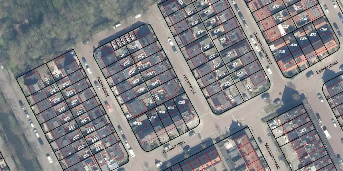 Het perceel waarop Appelstraat 1 staat heeft een oppervlakte van 181 m². Dit is een middelgroot perceel. De perceeloppervlakte wordt geregistreerd door het Kadaster. Gedetailleerde informatie over de maten van dit perceel kunt u vinden in het rapport Kadastrale kaart met maatvoering van Appelstraat 1.
