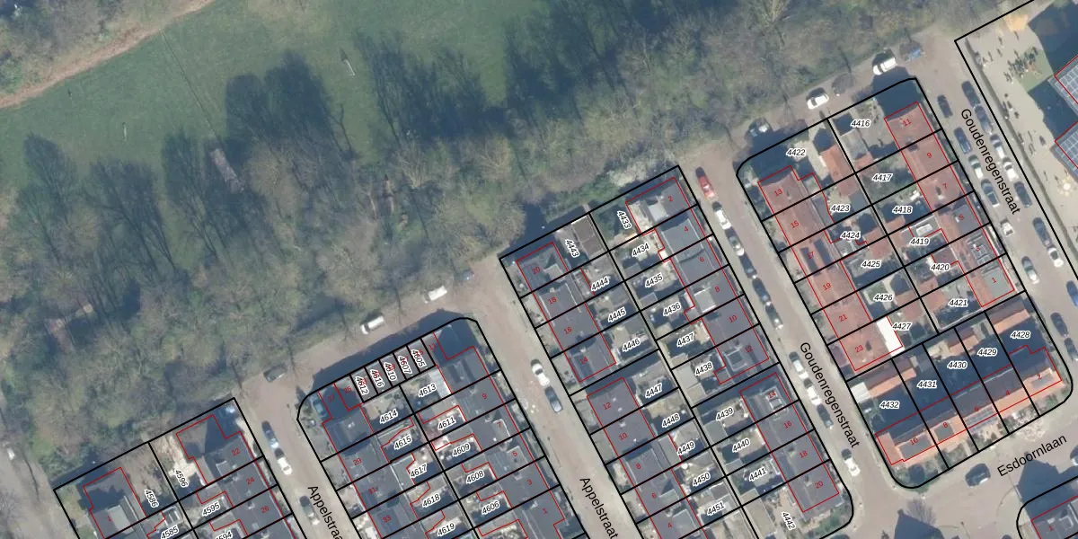Appelstraat 20 is gelegen op kadastraal perceel WDN01B4443. Deze kadastrale aanduiding is uniek en wordt gebruikt door het Kadaster om eigendomsrechten en andere zakelijke rechten vast te leggen. Het perceel maakt onderdeel uit van de kadastrale gemeente Woerden.