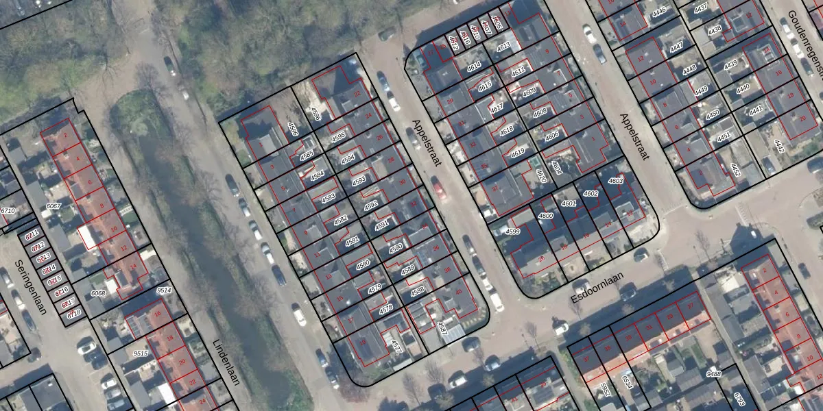Appelstraat 32 is gelegen op kadastraal perceel WDN01B4591. Deze kadastrale aanduiding is uniek en wordt gebruikt door het Kadaster om eigendomsrechten en andere zakelijke rechten vast te leggen. Het perceel maakt onderdeel uit van de kadastrale gemeente Woerden.
