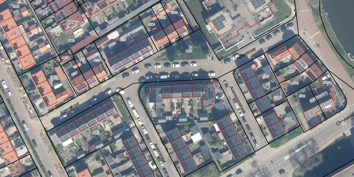 Asterstraat 7 is gelegen op kadastraal perceel WDN01B3966. Deze kadastrale aanduiding is uniek en wordt gebruikt door het Kadaster om eigendomsrechten en andere zakelijke rechten vast te leggen. Het perceel maakt onderdeel uit van de kadastrale gemeente Woerden.