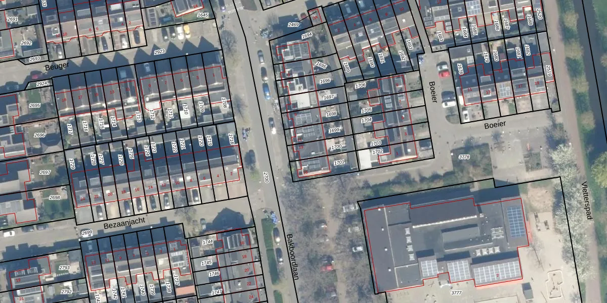 Gebruik de zoekbalk of klik op een perceel voor informatie over de adressen binnen dit perceel.