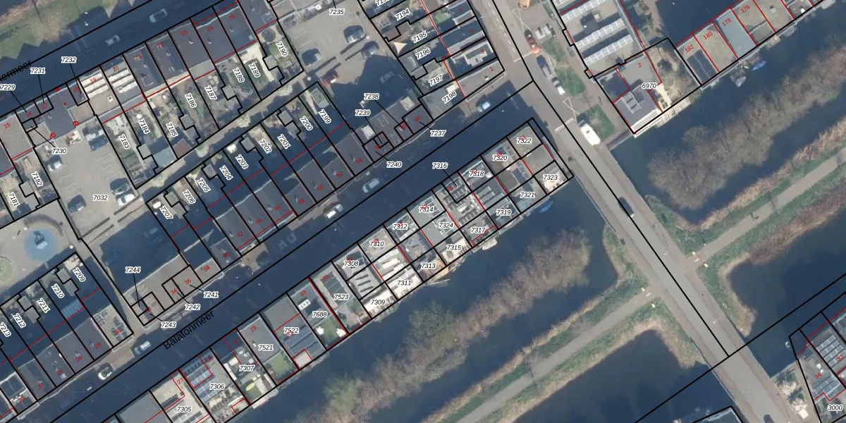 Het perceel waarop Balatonmeer 43 staat heeft een oppervlakte van 46 m². Dit is een klein perceel. De perceeloppervlakte wordt geregistreerd door het Kadaster. Gedetailleerde informatie over de maten van dit perceel kunt u vinden in het rapport Kadastrale kaart met maatvoering van Balatonmeer 43.