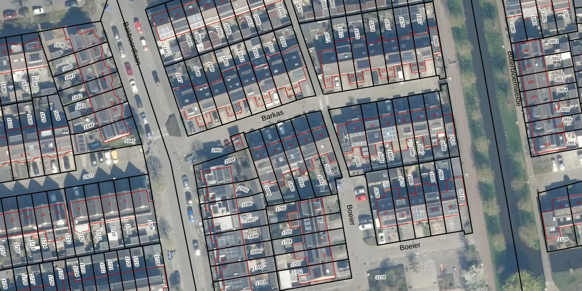 Gebruik de zoekbalk of klik op een perceel voor informatie over de adressen binnen dit perceel.