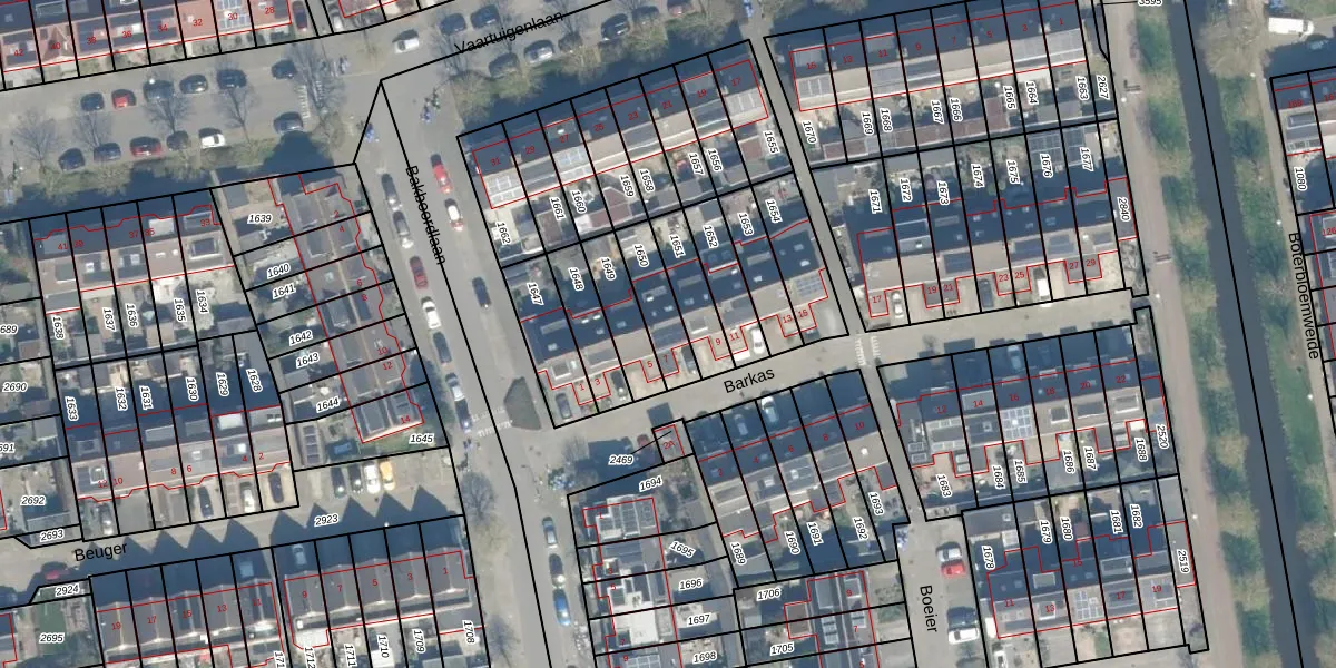 Het perceel waarop Barkas 7 staat heeft een oppervlakte van 136 m². Dit is een middelgroot perceel. De perceeloppervlakte wordt geregistreerd door het Kadaster. Gedetailleerde informatie over de maten van dit perceel kunt u vinden in het rapport Kadastrale kaart met maatvoering van Barkas 7.