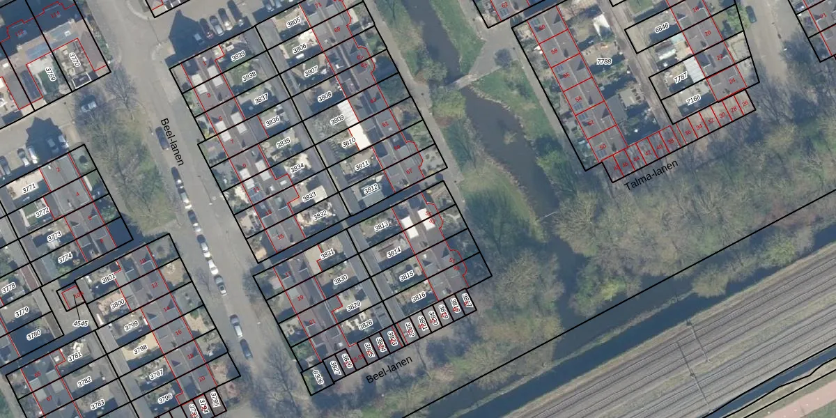 Beel-lanen 55 is gelegen op kadastraal perceel WDN01A3813. Deze kadastrale aanduiding is uniek en wordt gebruikt door het Kadaster om eigendomsrechten en andere zakelijke rechten vast te leggen. Het perceel maakt onderdeel uit van de kadastrale gemeente Woerden.