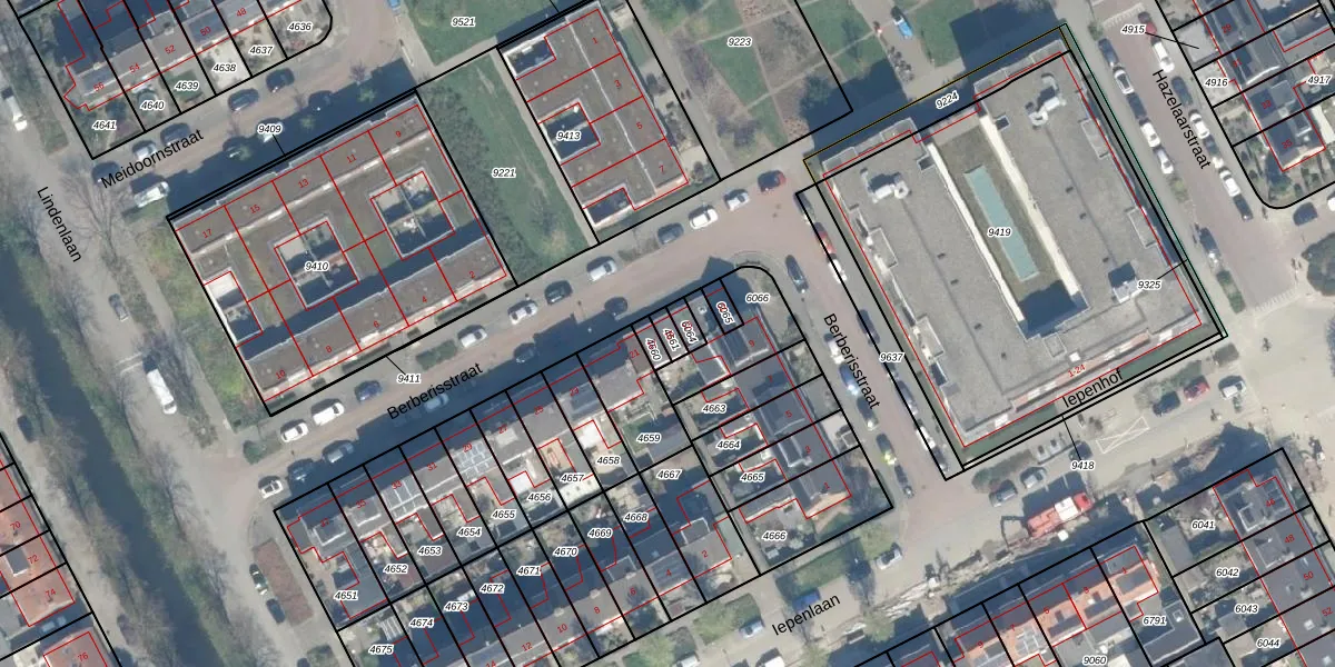 Het perceel waarop Berberisstraat 15 staat heeft een oppervlakte van 23 m². Dit is een klein perceel. De perceeloppervlakte wordt geregistreerd door het Kadaster. Gedetailleerde informatie over de maten van dit perceel kunt u vinden in het rapport Kadastrale kaart met maatvoering van Berberisstraat 15.