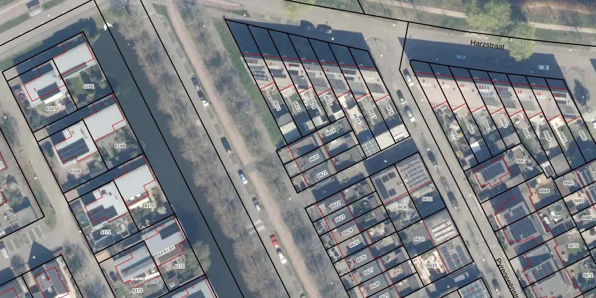 Gebruik de zoekbalk of klik op een perceel voor informatie over de adressen binnen dit perceel.