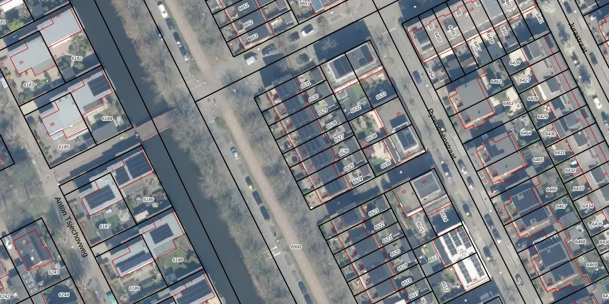 Het perceel waarop het adres ligt is WDN01-A-6527. De afkorting 'WDN01' staat voor kadastrale gemeente Woerden. Het perceel is kleiner dan gemiddeld in Woerden. Het perceel is 123 m² groot, terwijl het gemiddelde ligt op 1326,16 m². De grootste perceeloppervlakte in de kadastrale gemeente is 55,0 ha. De kleinste oppervlakte bedraagt 0 m². Op het perceel bevinden zich geen andere adressen. De huidige grenzen van het perceel zijn digitaal in de Basisregistratie Kadaster (BRK) geregistreerd op 10-01-2001.