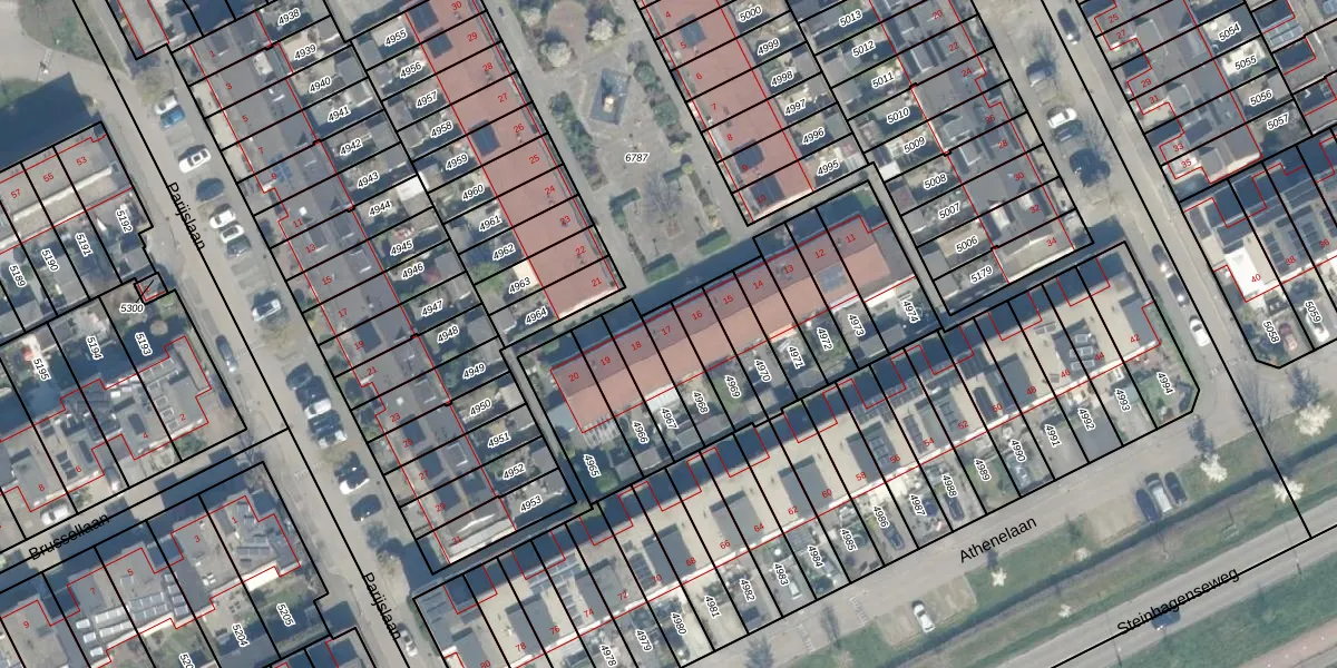 Gebruik de zoekbalk of klik op een perceel voor informatie over de adressen binnen dit perceel.