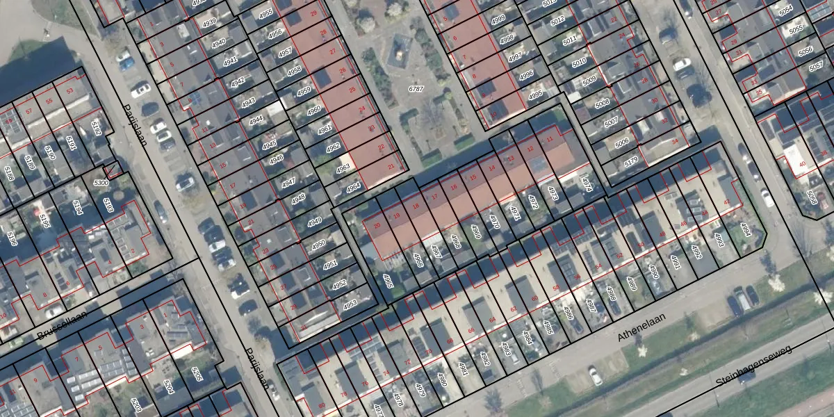 Gebruik de zoekbalk of klik op een perceel voor informatie over de adressen binnen dit perceel.