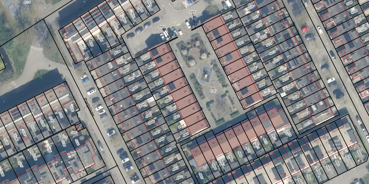 Het adres ligt op het perceel WDN01-A-4960, dat zich in de kadastrale gemeente Woerden bevindt. De gemiddelde perceelgrootte in Woerden is 1326,16 m². Dit perceel is kleiner: de perceeloppervlakte bedraagt 105 m². De grootste perceeloppervlakte in de kadastrale gemeente is 55,0 ha. De kleinste oppervlakte bedraagt 0 m². Dit is het enige adres dat aanwezig is op het perceel. De huidige grenzen van het perceel zijn digitaal in de Basisregistratie Kadaster (BRK) geregistreerd op 02-01-2003.