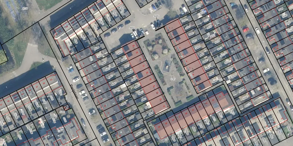 Het adres ligt op het perceel WDN01-A-4959, dat zich in de kadastrale gemeente Woerden bevindt. De gemiddelde perceelgrootte in Woerden is 1326,16 m². Dit perceel is kleiner: de perceeloppervlakte bedraagt 105 m². De grootste perceeloppervlakte in de kadastrale gemeente is 55,0 ha. De kleinste oppervlakte bedraagt 0 m². Dit is het enige adres dat aanwezig is op het perceel. De laatste wijziging in het de Basisregistratie Kadaster (BRK) was op 02-01-2003.