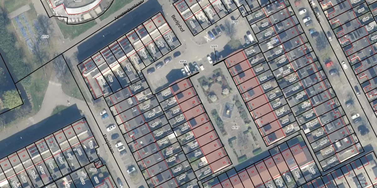 Het perceel waarop Berlijnhof 29 staat heeft een oppervlakte van 103 m². Dit is een middelgroot perceel. De perceeloppervlakte wordt geregistreerd door het Kadaster. Gedetailleerde informatie over de maten van dit perceel kunt u vinden in het rapport Kadastrale kaart met maatvoering van Berlijnhof 29.