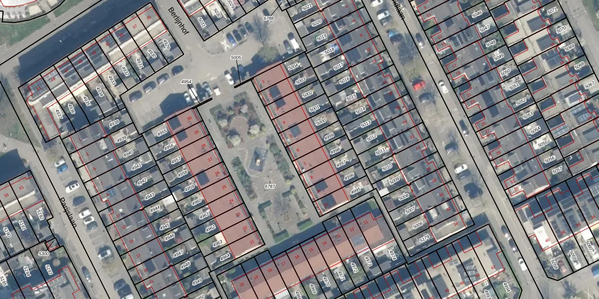 Het perceel waarop Berlijnhof 6 staat heeft een oppervlakte van 105 m². Dit is een middelgroot perceel. De perceeloppervlakte wordt geregistreerd door het Kadaster. Gedetailleerde informatie over de maten van dit perceel kunt u vinden in het rapport Kadastrale kaart met maatvoering van Berlijnhof 6.