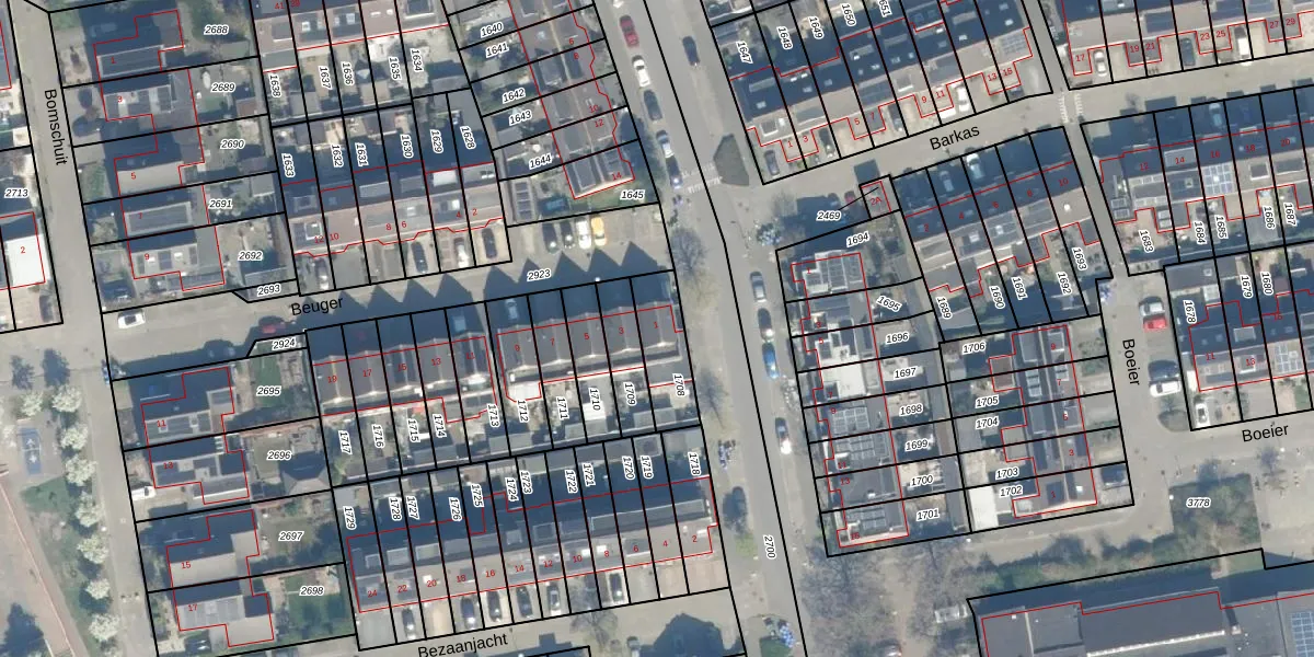 Het perceel waarop Beuger 1 staat heeft een oppervlakte van 166 m². Dit is een middelgroot perceel. De perceeloppervlakte wordt geregistreerd door het Kadaster. Gedetailleerde informatie over de maten van dit perceel kunt u vinden in het rapport Kadastrale kaart met maatvoering van Beuger 1.