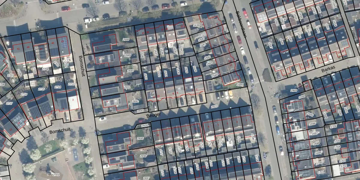 Gebruik de zoekbalk of klik op een perceel voor informatie over de adressen binnen dit perceel.