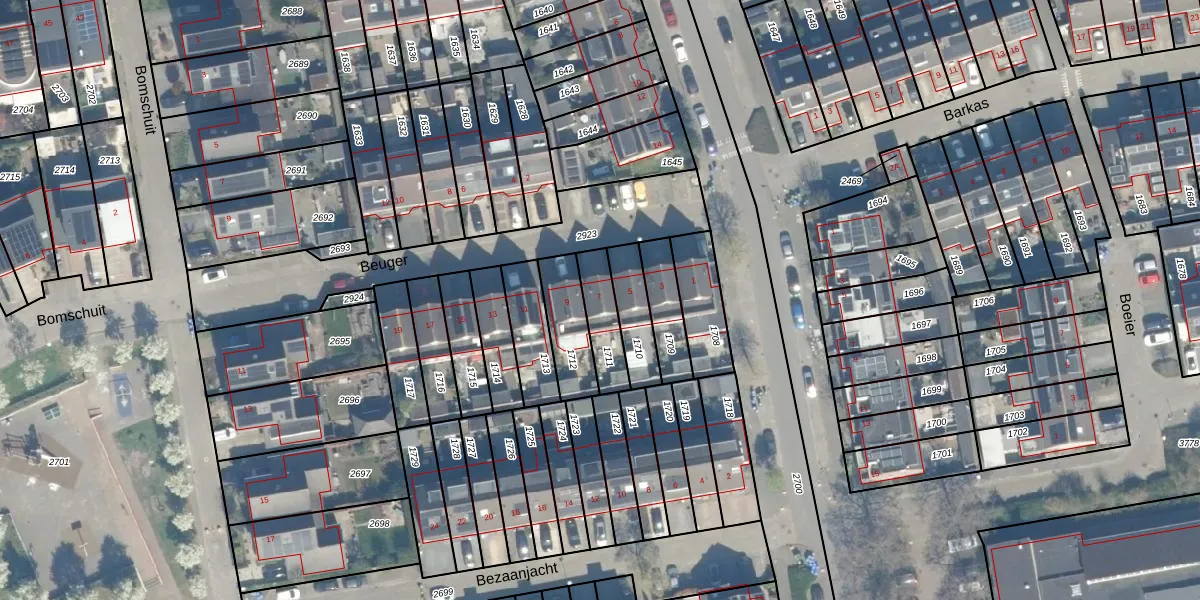 Gebruik de zoekbalk of klik op een perceel voor informatie over de adressen binnen dit perceel.