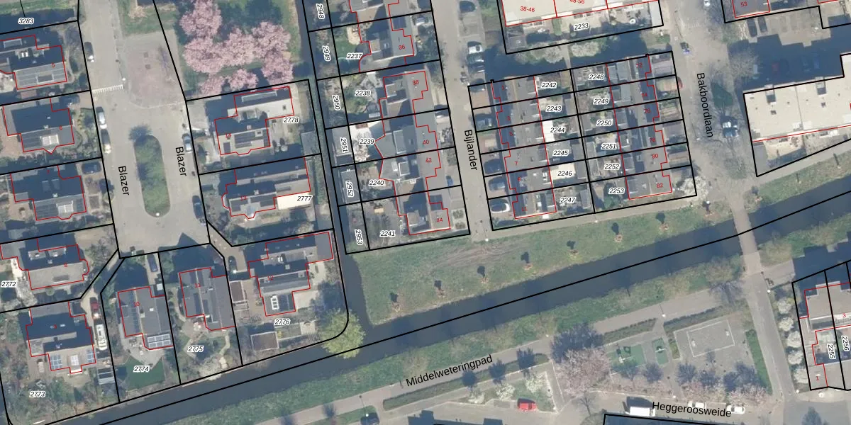 Het perceel waarop Bijlander 44 staat heeft een oppervlakte van 278 m². Dit is een middelgroot perceel. De perceeloppervlakte wordt geregistreerd door het Kadaster. Gedetailleerde informatie over de maten van dit perceel kunt u vinden in het rapport Kadastrale kaart met maatvoering van Bijlander 44.