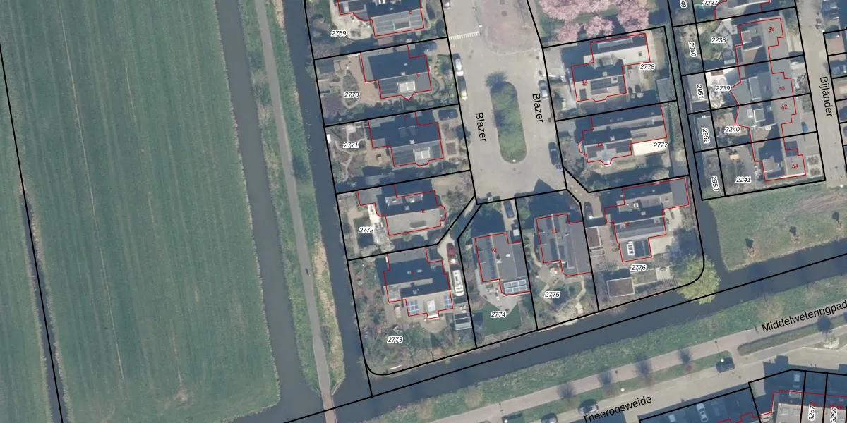 Gebruik de zoekbalk of klik op een perceel voor informatie over de adressen binnen dit perceel.