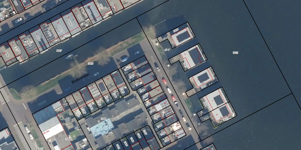 Bodenmeer 22 is gelegen op kadastraal perceel WDN01A7388. Deze kadastrale aanduiding is uniek en wordt gebruikt door het Kadaster om eigendomsrechten en andere zakelijke rechten vast te leggen. Het perceel maakt onderdeel uit van de kadastrale gemeente Woerden.