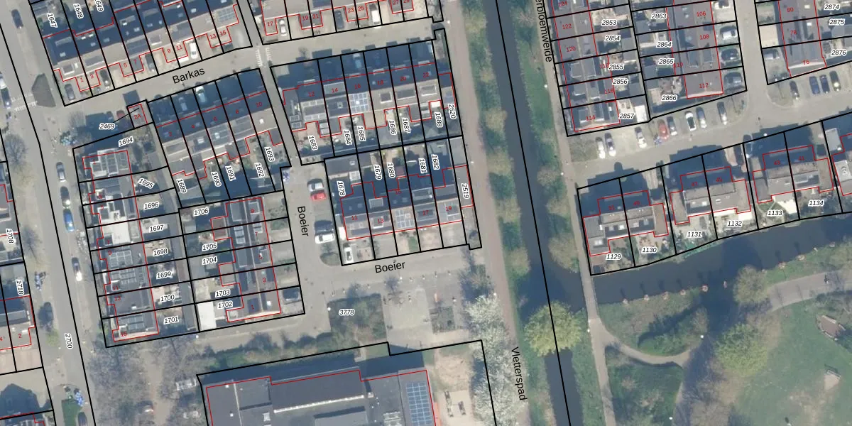 Het perceel waarop Boeier 17 staat heeft een oppervlakte van 137 m². Dit is een middelgroot perceel. De perceeloppervlakte wordt geregistreerd door het Kadaster. Gedetailleerde informatie over de maten van dit perceel kunt u vinden in het rapport Kadastrale kaart met maatvoering van Boeier 17.