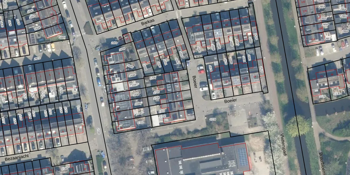 Het perceel waarop Boeier 7 staat heeft een oppervlakte van 136 m². Dit is een middelgroot perceel. De perceeloppervlakte wordt geregistreerd door het Kadaster. Gedetailleerde informatie over de maten van dit perceel kunt u vinden in het rapport Kadastrale kaart met maatvoering van Boeier 7.