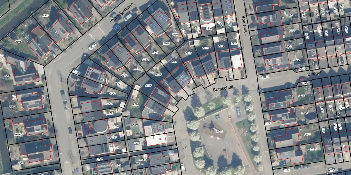 Gebruik de zoekbalk of klik op een perceel voor informatie over de adressen binnen dit perceel.