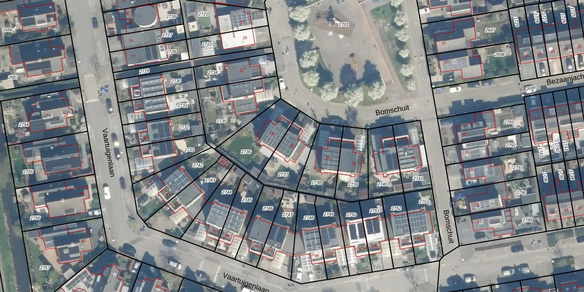 Het perceel waarop Bomschuit 28 staat heeft een oppervlakte van 293 m². Dit is een middelgroot perceel. De perceeloppervlakte wordt geregistreerd door het Kadaster. Gedetailleerde informatie over de maten van dit perceel kunt u vinden in het rapport Kadastrale kaart met maatvoering van Bomschuit 28.