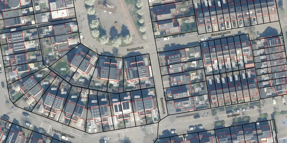 Gebruik de zoekbalk of klik op een perceel voor informatie over de adressen binnen dit perceel.