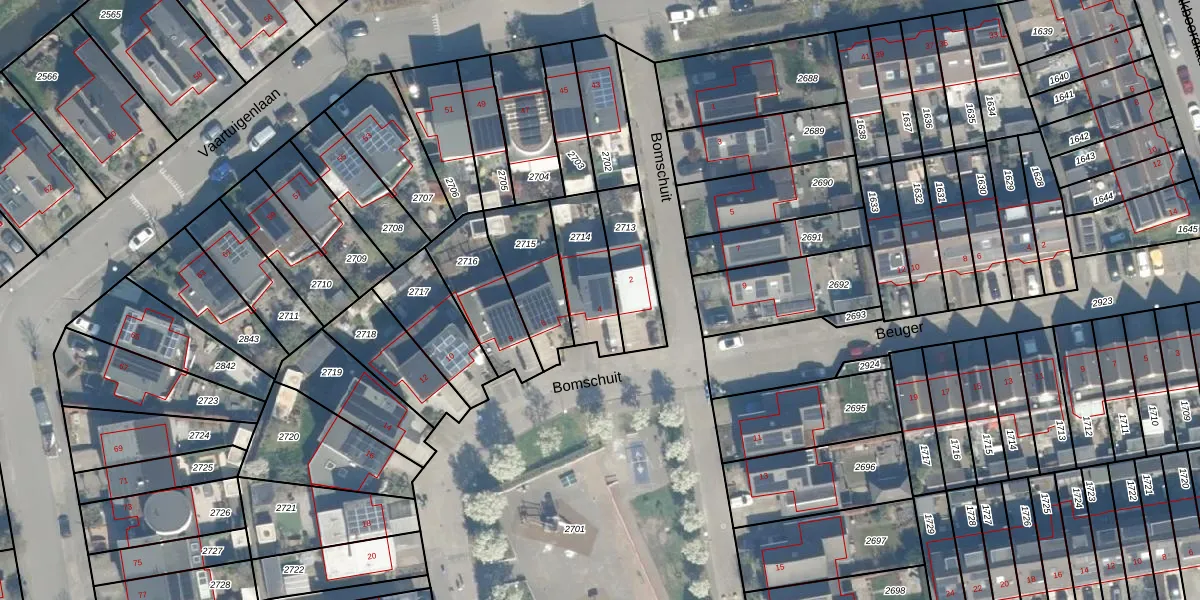 Het perceel waarop Bomschuit 4 staat heeft een oppervlakte van 212 m². Dit is een middelgroot perceel. De perceeloppervlakte wordt geregistreerd door het Kadaster. Gedetailleerde informatie over de maten van dit perceel kunt u vinden in het rapport Kadastrale kaart met maatvoering van Bomschuit 4.