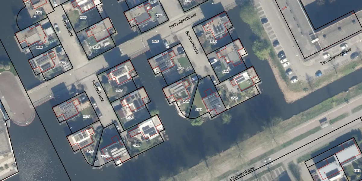 Borkumkade 5 is gelegen op kadastraal perceel WDN01A5587. Deze kadastrale aanduiding is uniek en wordt gebruikt door het Kadaster om eigendomsrechten en andere zakelijke rechten vast te leggen. Het perceel maakt onderdeel uit van de kadastrale gemeente Woerden.