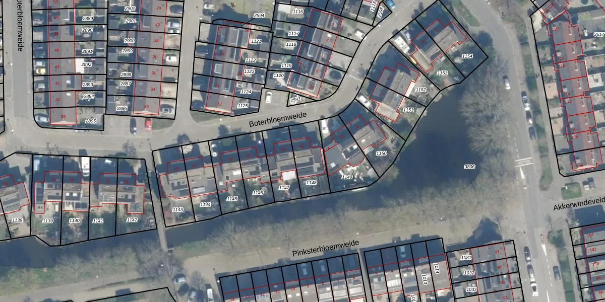 Boterbloemweide 13 is gelegen op kadastraal perceel WDN01D1148. Deze kadastrale aanduiding is uniek en wordt gebruikt door het Kadaster om eigendomsrechten en andere zakelijke rechten vast te leggen. Het perceel maakt onderdeel uit van de kadastrale gemeente Woerden.
