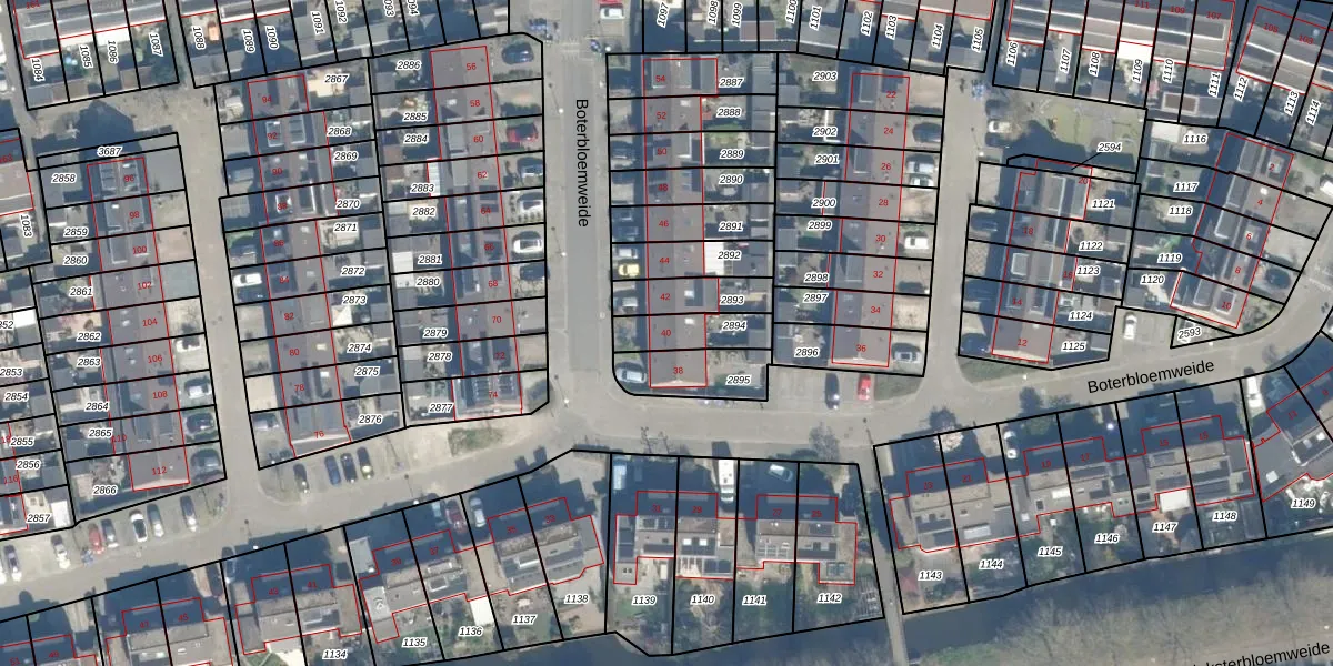 Boterbloemweide 40 is gelegen op kadastraal perceel WDN01D2894. Deze kadastrale aanduiding is uniek en wordt gebruikt door het Kadaster om eigendomsrechten en andere zakelijke rechten vast te leggen. Het perceel maakt onderdeel uit van de kadastrale gemeente Woerden.