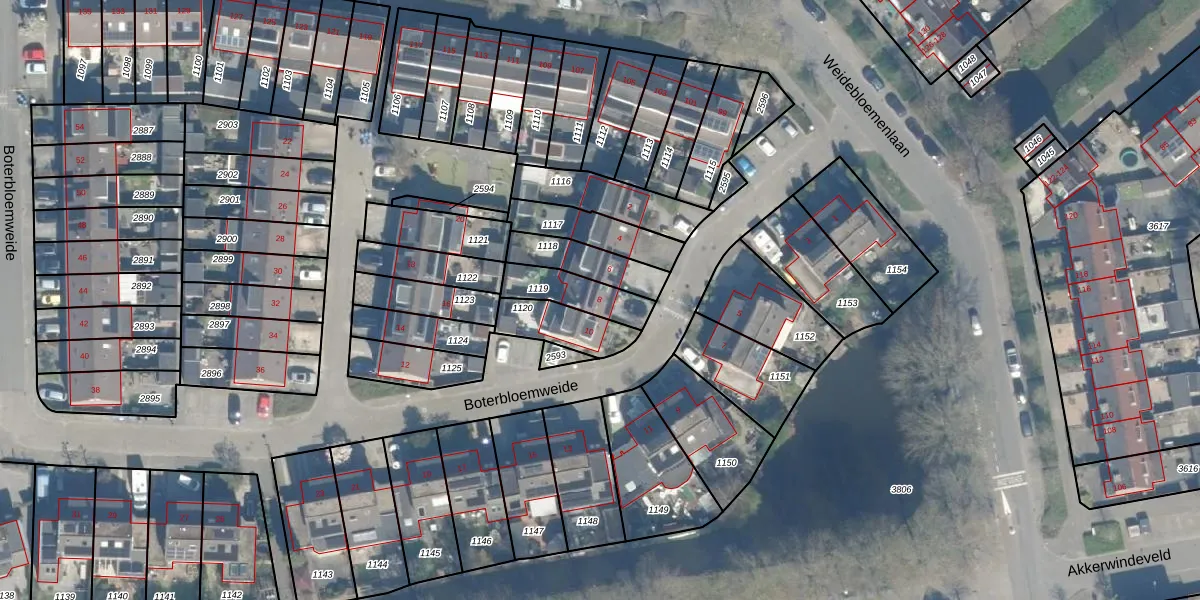 Boterbloemweide 8 is gelegen op kadastraal perceel WDN01D1119. Deze kadastrale aanduiding is uniek en wordt gebruikt door het Kadaster om eigendomsrechten en andere zakelijke rechten vast te leggen. Het perceel maakt onderdeel uit van de kadastrale gemeente Woerden.