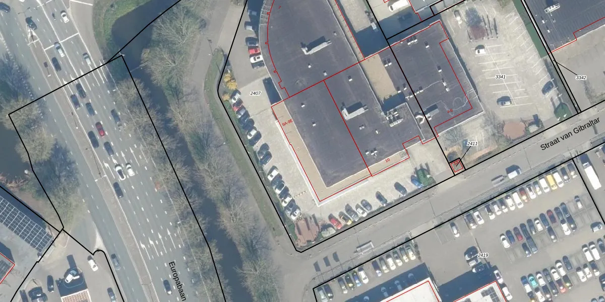Het perceel waarop het adres ligt is WDN01-E-2407. De afkorting 'WDN01' staat voor kadastrale gemeente Woerden. De oppervlakte van het perceel is 5005 m². Dat is groter dan gemiddeld in Woerden, waar de gemiddelde perceeloppervlakte op 1326,34 m² ligt. Het grootste perceel in de kadastrale gemeente is 55,0 ha. Het kleinste perceel heeft een oppervlakte van 0 m². Er zijn 4 adressen aanwezig op het perceel. De huidige grenzen van het perceel zijn digitaal in de Basisregistratie Kadaster (BRK) geregistreerd op 21-08-2009.