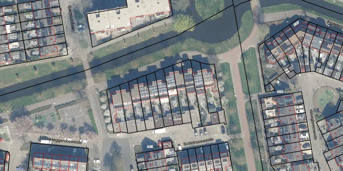 Bottelroosweide 13 is gelegen op kadastraal perceel WDN01D2261. Deze kadastrale aanduiding is uniek en wordt gebruikt door het Kadaster om eigendomsrechten en andere zakelijke rechten vast te leggen. Het perceel maakt onderdeel uit van de kadastrale gemeente Woerden.