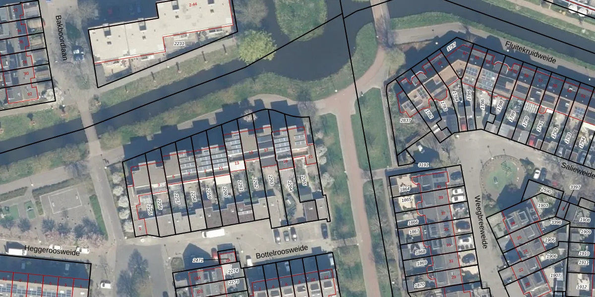 Gebruik de zoekbalk of klik op een perceel voor informatie over de adressen binnen dit perceel.