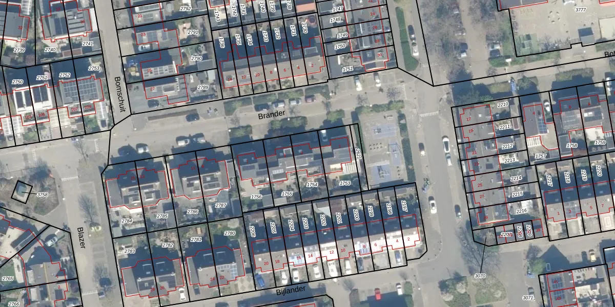 Het perceel waarop Brander 3 staat heeft een oppervlakte van 206 m². Dit is een middelgroot perceel. De perceeloppervlakte wordt geregistreerd door het Kadaster. Gedetailleerde informatie over de maten van dit perceel kunt u vinden in het rapport Kadastrale kaart met maatvoering van Brander 3.