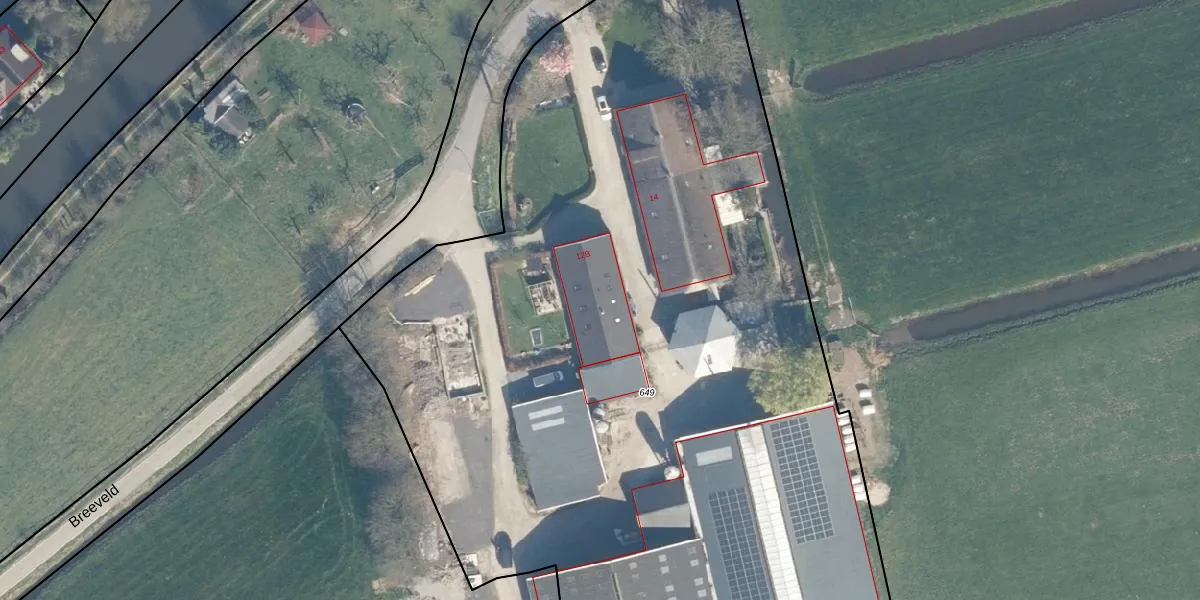 Het perceel waarop Breeveld 12-B staat heeft een oppervlakte van 7482 m². Dit is een zeer groot perceel. De perceeloppervlakte wordt geregistreerd door het Kadaster. Gedetailleerde informatie over de maten van dit perceel kunt u vinden in het rapport Kadastrale kaart met maatvoering van Breeveld 12-B.