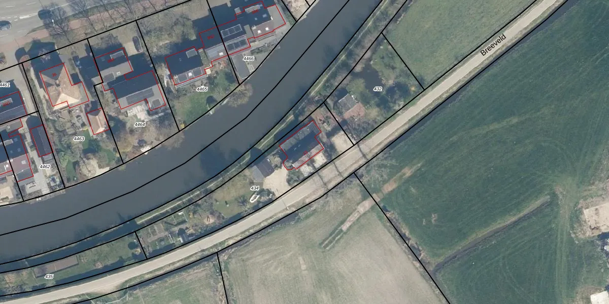 Het perceel waarop Breeveld 13 staat heeft een oppervlakte van 1030 m². Dit is een zeer groot perceel. De perceeloppervlakte wordt geregistreerd door het Kadaster. Gedetailleerde informatie over de maten van dit perceel kunt u vinden in het rapport Kadastrale kaart met maatvoering van Breeveld 13.