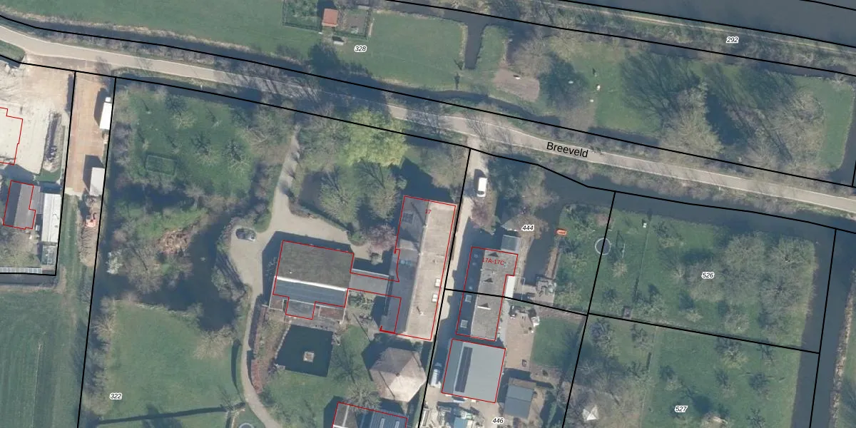 Het perceel waarop Breeveld 17 staat heeft een oppervlakte van 7923 m². Dit is een zeer groot perceel. De perceeloppervlakte wordt geregistreerd door het Kadaster. Gedetailleerde informatie over de maten van dit perceel kunt u vinden in het rapport Kadastrale kaart met maatvoering van Breeveld 17.