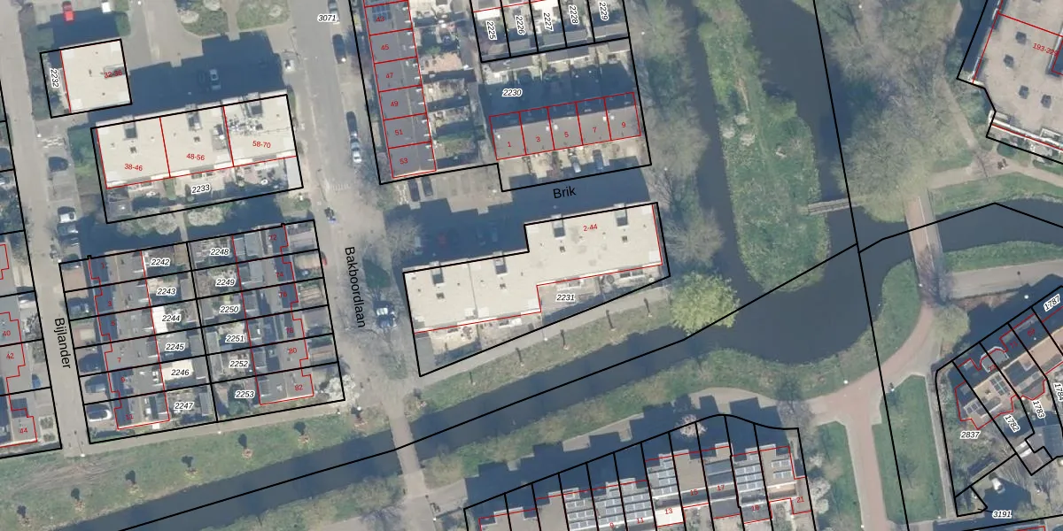 Het perceel waarop Brik 38 staat heeft een oppervlakte van 834 m². Dit is een groot perceel. De perceeloppervlakte wordt geregistreerd door het Kadaster. Gedetailleerde informatie over de maten van dit perceel kunt u vinden in het rapport Kadastrale kaart met maatvoering van Brik 38.