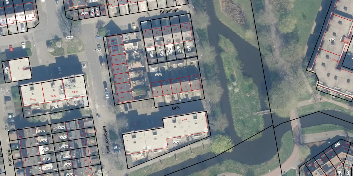 Brik 5 is gelegen op kadastraal perceel WDN01D2230. Deze kadastrale aanduiding is uniek en wordt gebruikt door het Kadaster om eigendomsrechten en andere zakelijke rechten vast te leggen. Het perceel maakt onderdeel uit van de kadastrale gemeente Woerden.