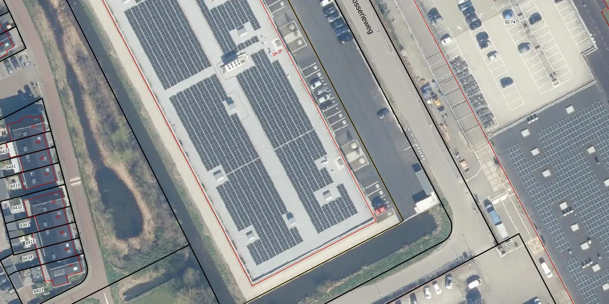 Het perceel waarop Carrosserieweg 2-B staat heeft een oppervlakte van 1,0 ha. Dit is een zeer groot perceel. De perceeloppervlakte wordt geregistreerd door het Kadaster. Gedetailleerde informatie over de maten van dit perceel kunt u vinden in het rapport Kadastrale kaart met maatvoering van Carrosserieweg 2-B.